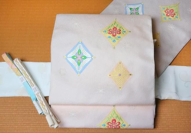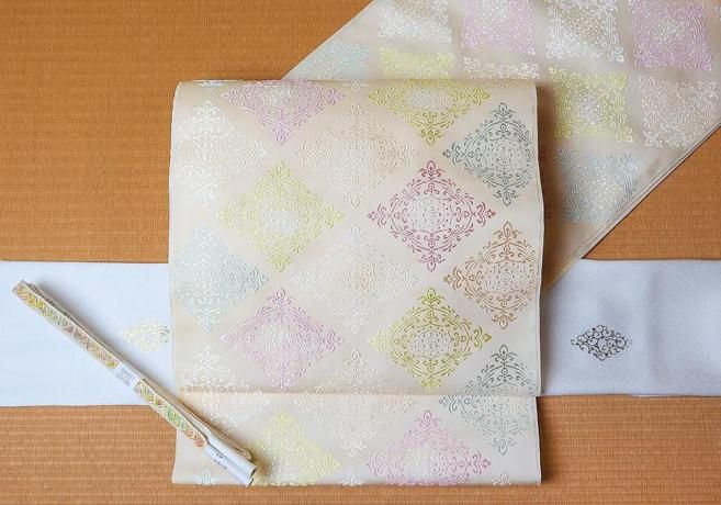 唐織 有職 菱文様 九寸名古屋帯 西陣織 (お仕立・帯芯込)