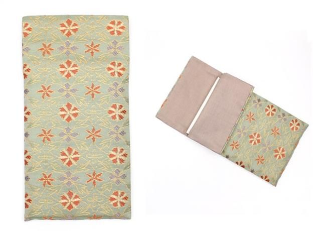 懐紙入れ 茶席扇入付 名物裂 梅鳥紋 グリーン/ブルーグレー