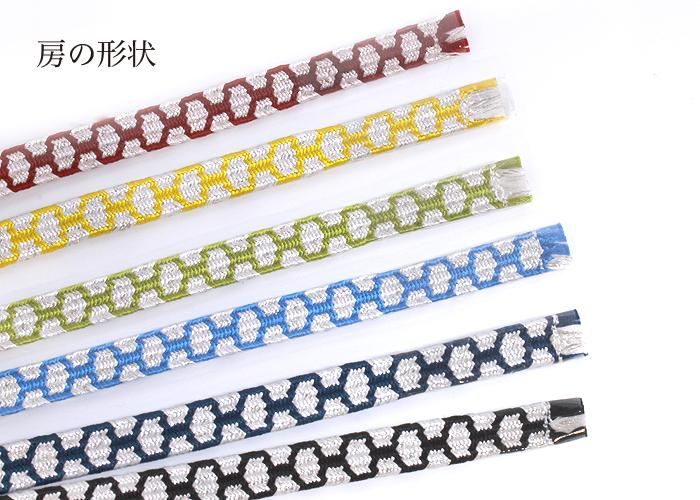 帯留めの三分紐金具に入る巾で、房部分も帯留めが通しやすい形ですので帯留めと一緒にお使い頂く事も可能です。