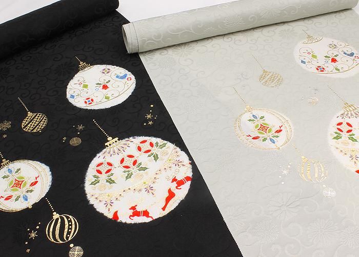 きねやオリジナル、クリスマスオーナメントの柄を手染めした逸品帯です