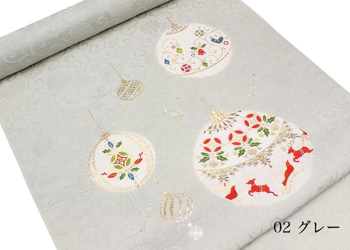 綸子絞り染めクリスマスオーナメント柄九寸名古屋帯(名古屋仕立・帯芯込)