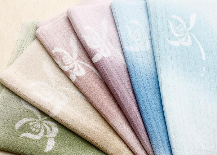 風に舞う姿の蘭の花が白抜きで散りばめられています。