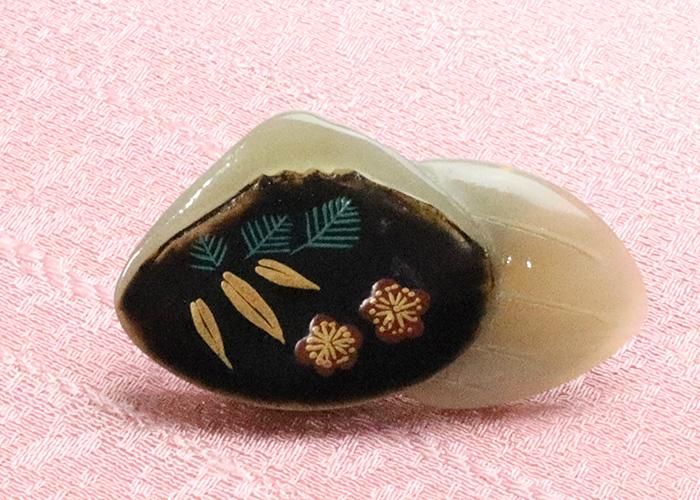 水牛角製帯留め 貝合わせ