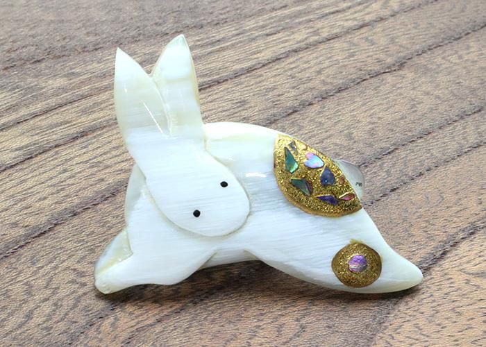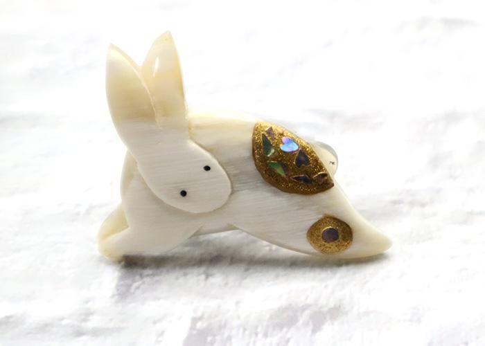水牛角製帯留め 螺鈿入 うさぎ