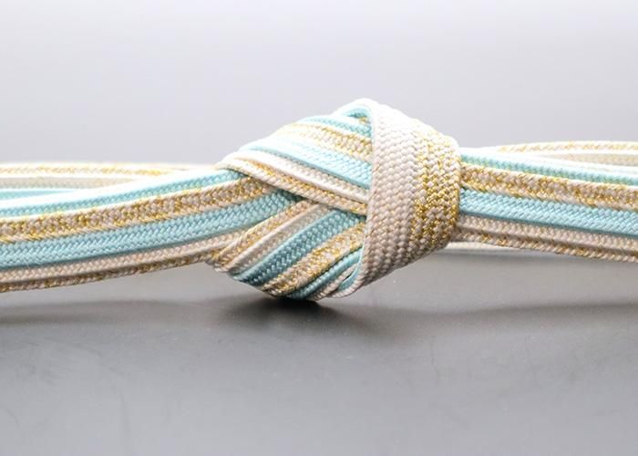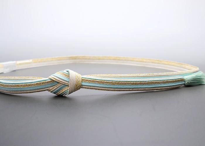 爽やかなライトブルーに金糸使いが上品で華やかな印象の帯〆。