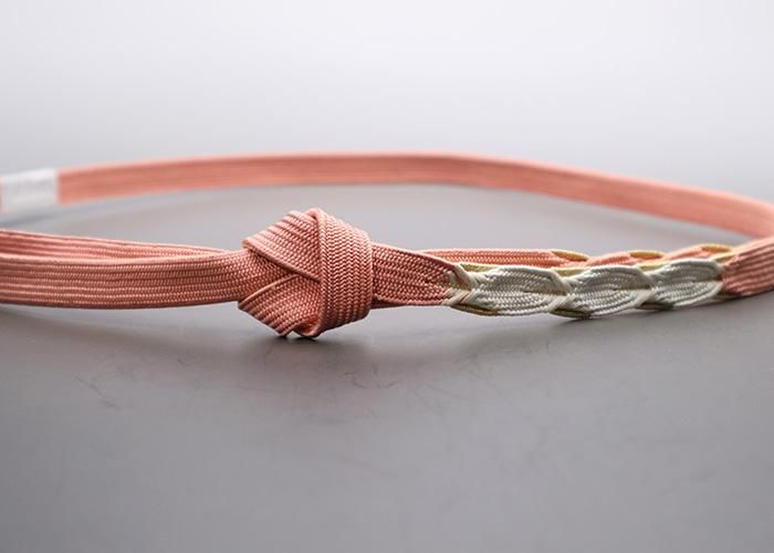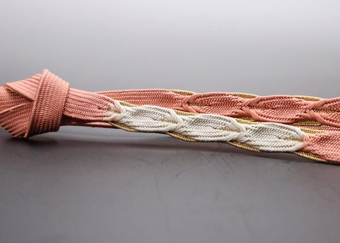 帯締め ピンク*金糸 葉模様 逸品 60
