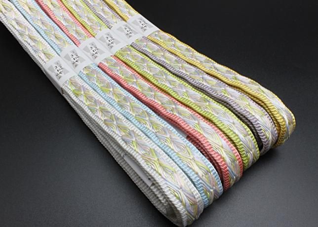 緩やかにグラデーションした上品なカラーに亀甲柄を施した美しい印象の帯〆です。