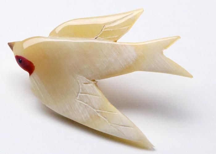 人を呼ぶ幸運のモチーフ、つばめの愛らしい帯留め。