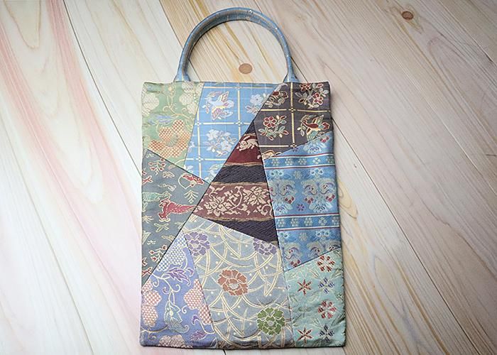 名物裂を切嵌めにした、裏面と表面で表情が違うトートバッグ。