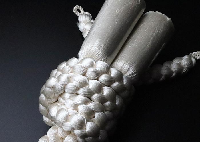 男性用羽織紐86 中尺 高麗昼夜(リバーシブル)房無し ベージュ&山葵色 直付け