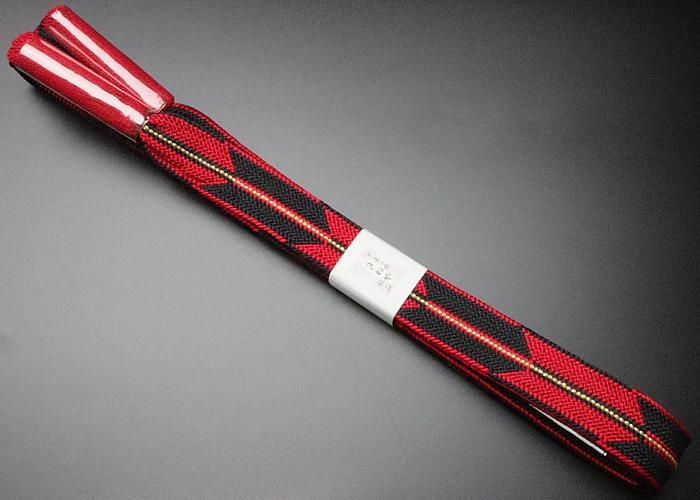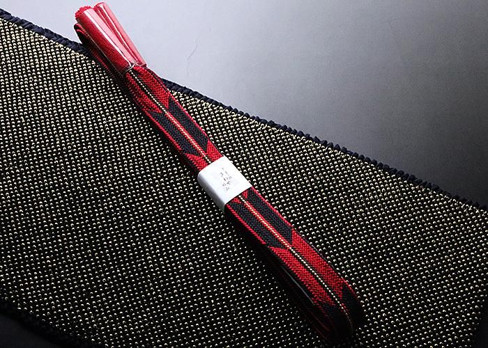 帯締め 振袖向 黒*赤 金糸 矢羽根 撚り房