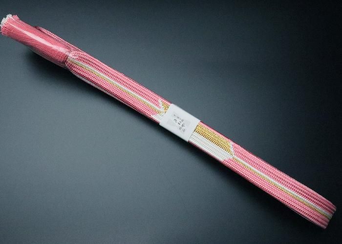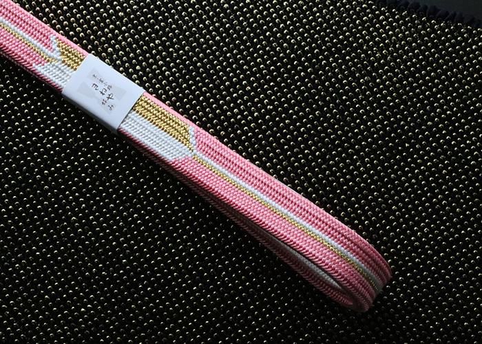 帯締め 振袖向 矢羽根 ピンク 金糸 撚り房