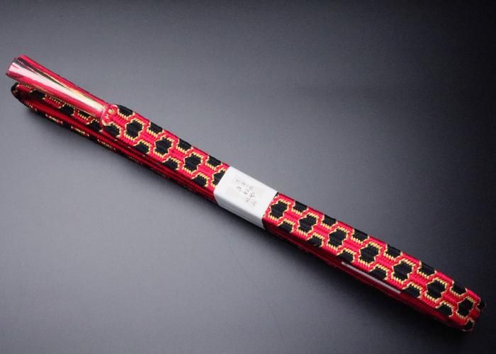 帯締め 振袖向 亀甲柄 赤*黒 金糸