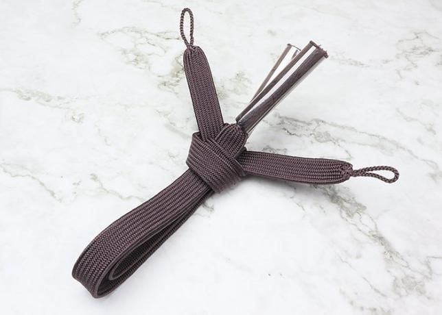 男性用羽織紐79 中尺 高麗昼夜(リバーシブル)房無し 焦茶&白鼠 直付け
