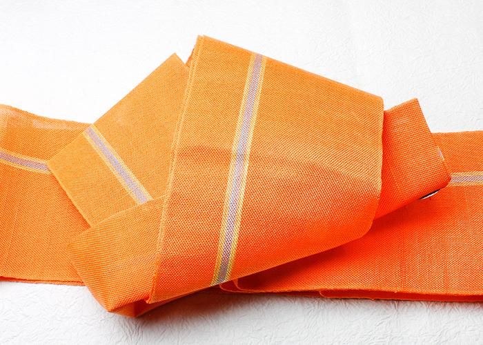 西陣七野 本麻 半幅帯 オレンジ