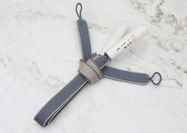 男性用羽織紐54 中尺 高麗耳付昼夜(リバーシブル) 鼠&絹鼠 直付け