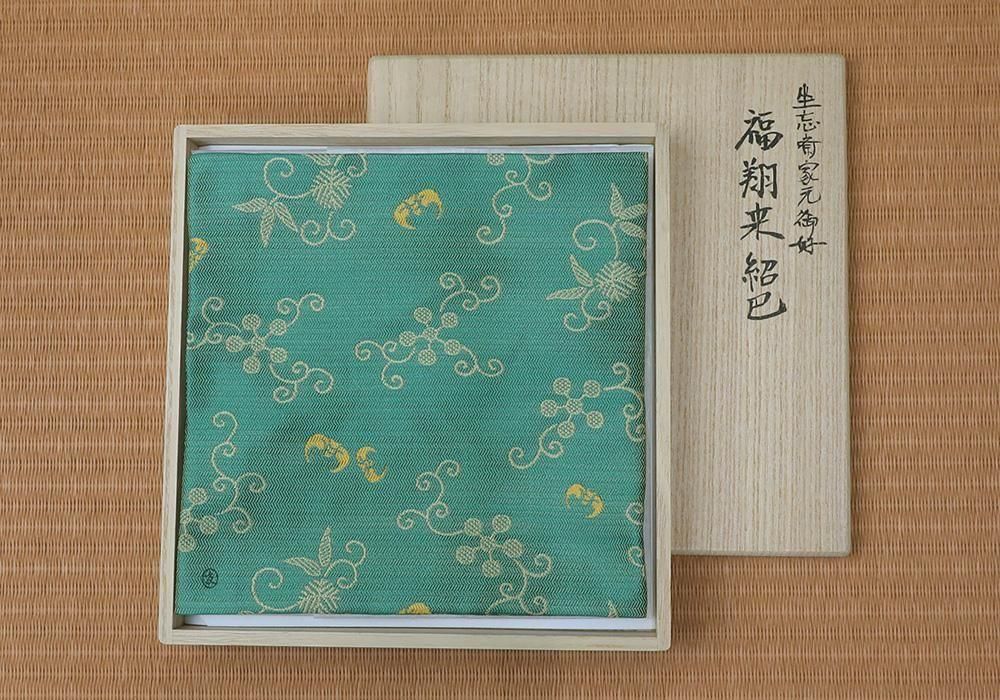 坐忘斎家元御好 福翔来紹巴古帛紗 緑 桐箱入