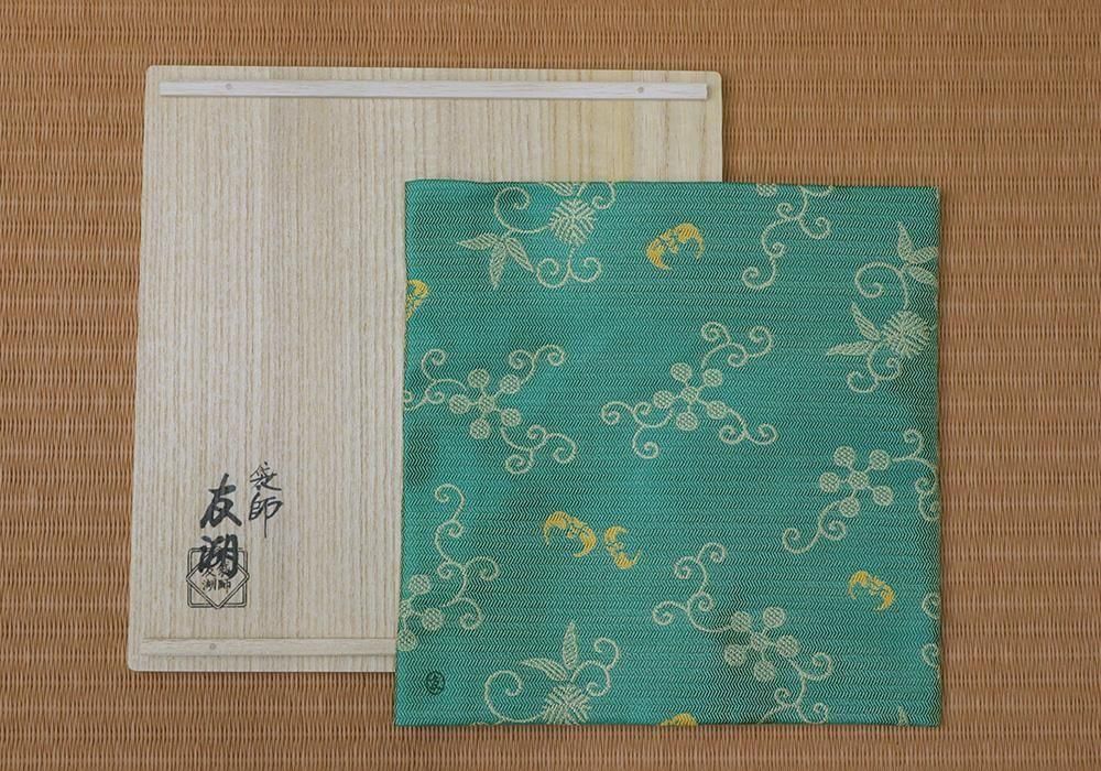 土田友湖作-坐忘斎家元御好 福翔来紹巴古帛紗 緑 桐箱入