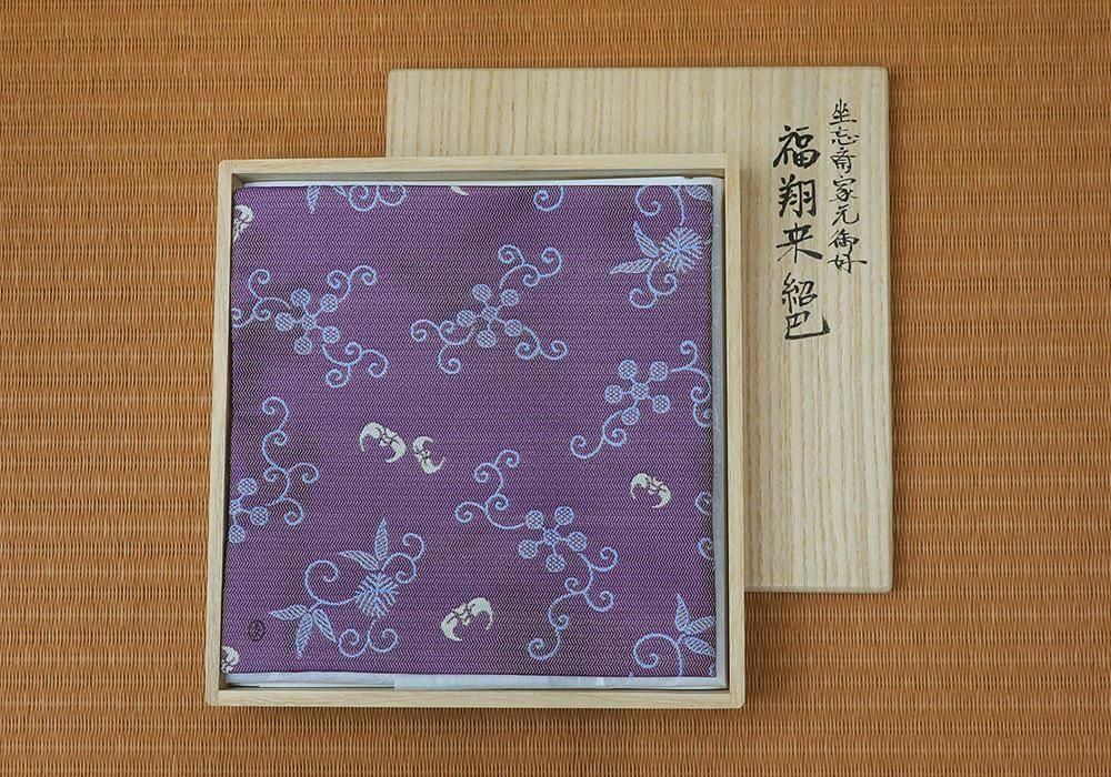 坐忘斎家元御好 福翔来紹巴古帛紗 紫 桐箱入