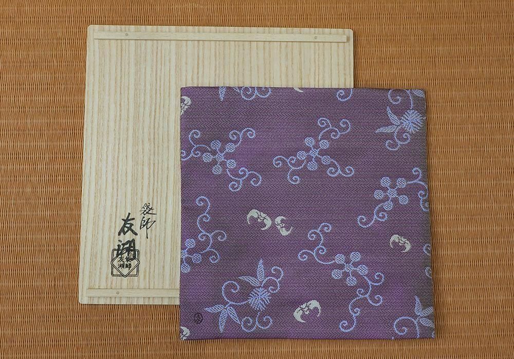 土田友湖作-坐忘斎家元御好 福翔来紹巴古帛紗 紫 桐箱入