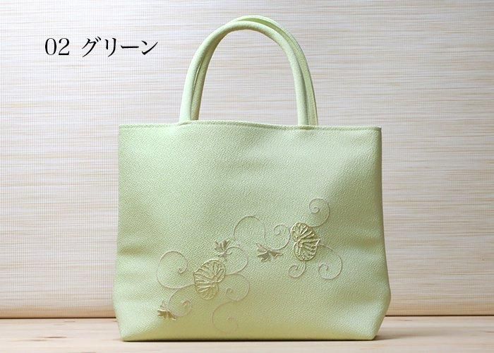 ポリエステルのちりめん生地に刺繍を施した、和装に似合うトートバッグです。