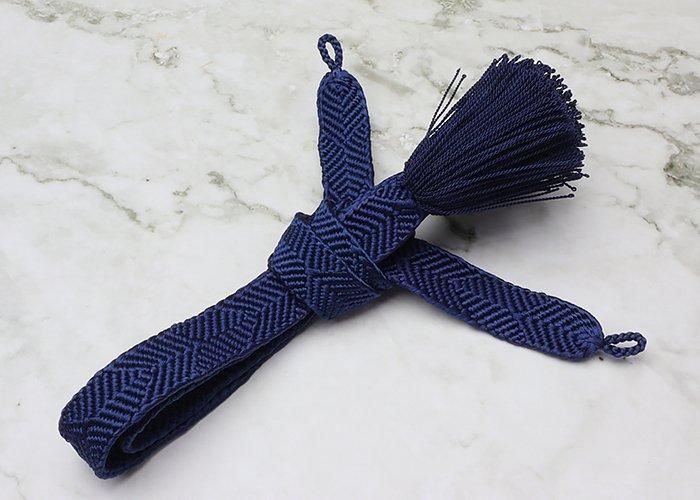 男性用羽織紐19 中尺 さざ波 紺 より房 かん付けタイプ