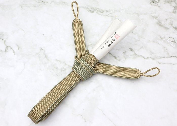 男性用羽織紐59 中尺 高麗耳付昼夜(リバーシブル) 砂色&山葵色 直付け