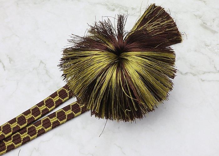 男性用羽織紐69 中尺 貝ノ口亀甲 濃焦茶&青朽葉 直付け