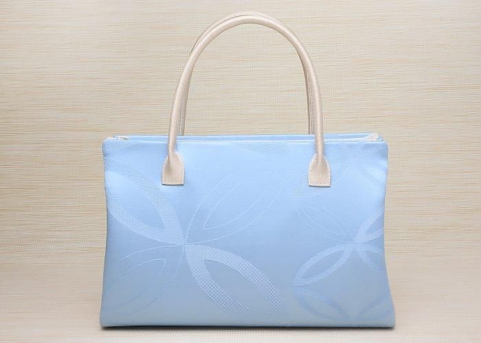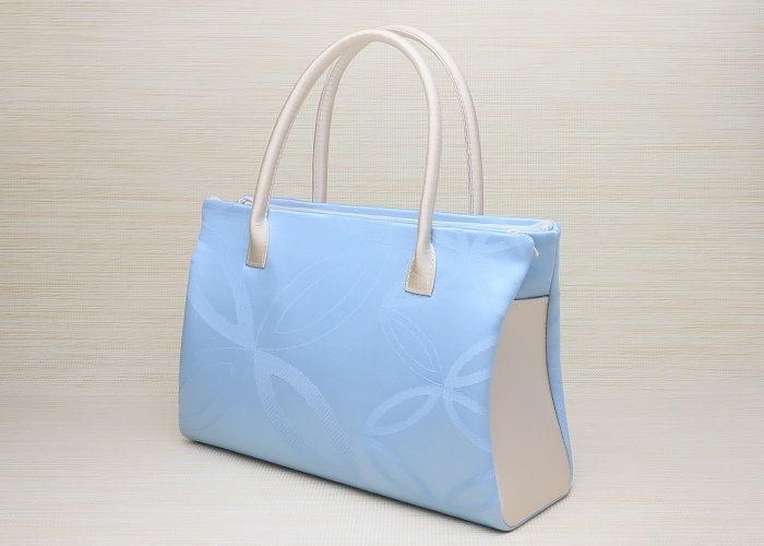 ソフトなブルー地に七宝柄のシンプルで使いやすい小町袋です。