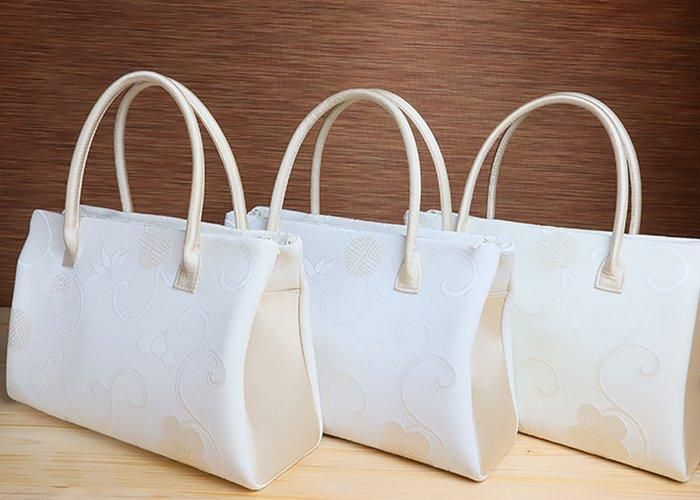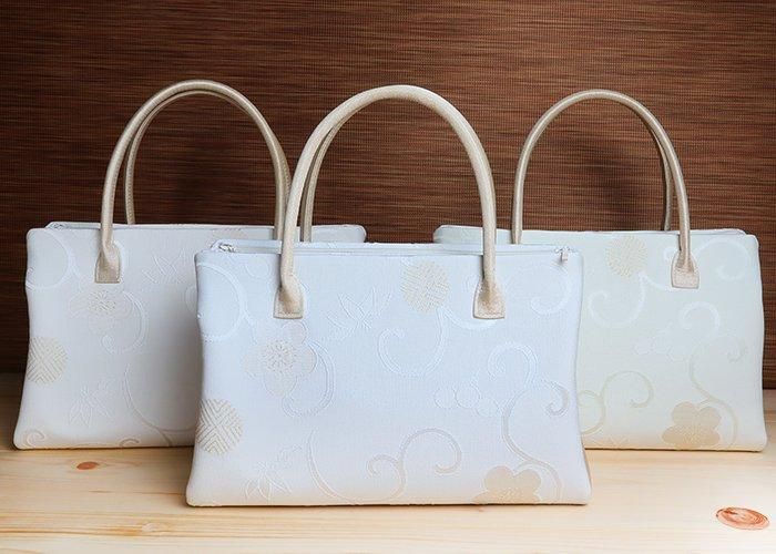 礼装からお洒落着物まで幅広くお使い頂ける金彩松竹梅柄の小町袋です。