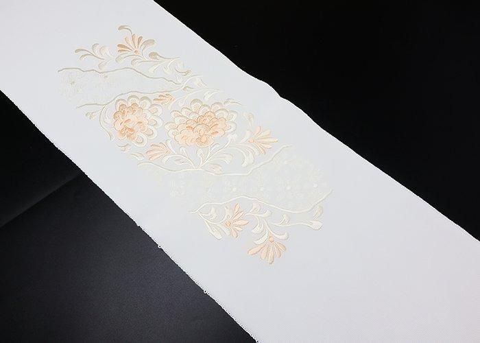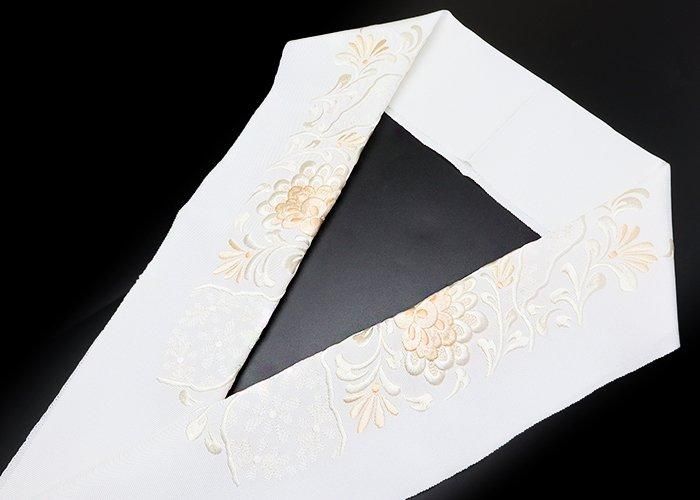 礼装向 正絹刺繍半衿 道長取り菊花柄 白ピンク