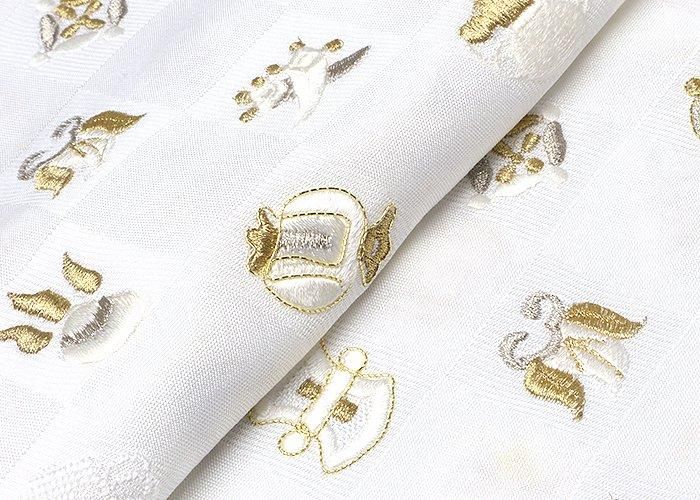 市松の地紋に宝柄刺繍が散りばめられた礼装にふさわしい帯揚げです。