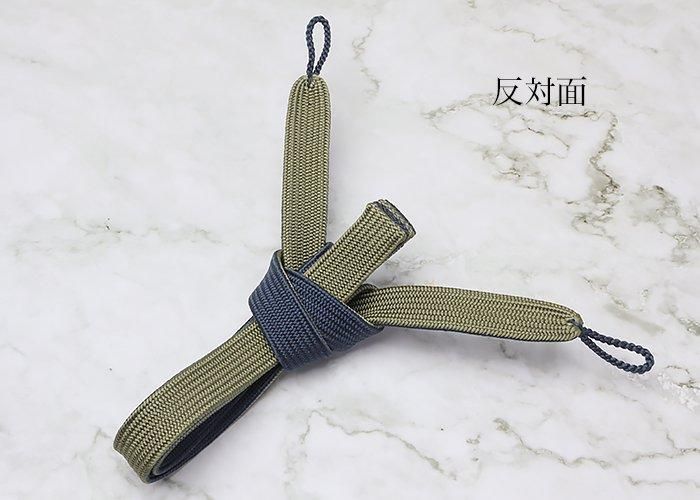 男性用羽織紐81 中尺 高麗昼夜(リバーシブル)房無し 灰味の鉄紺&鶸茶 直付け