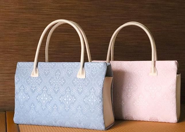 小町袋 中サイズ ダマスク柄 ヒヤシンスブルー/ローズミスト