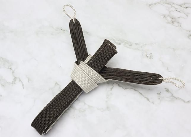 男性用羽織紐79 中尺 高麗昼夜(リバーシブル)房無し 焦茶&白鼠 直付け
