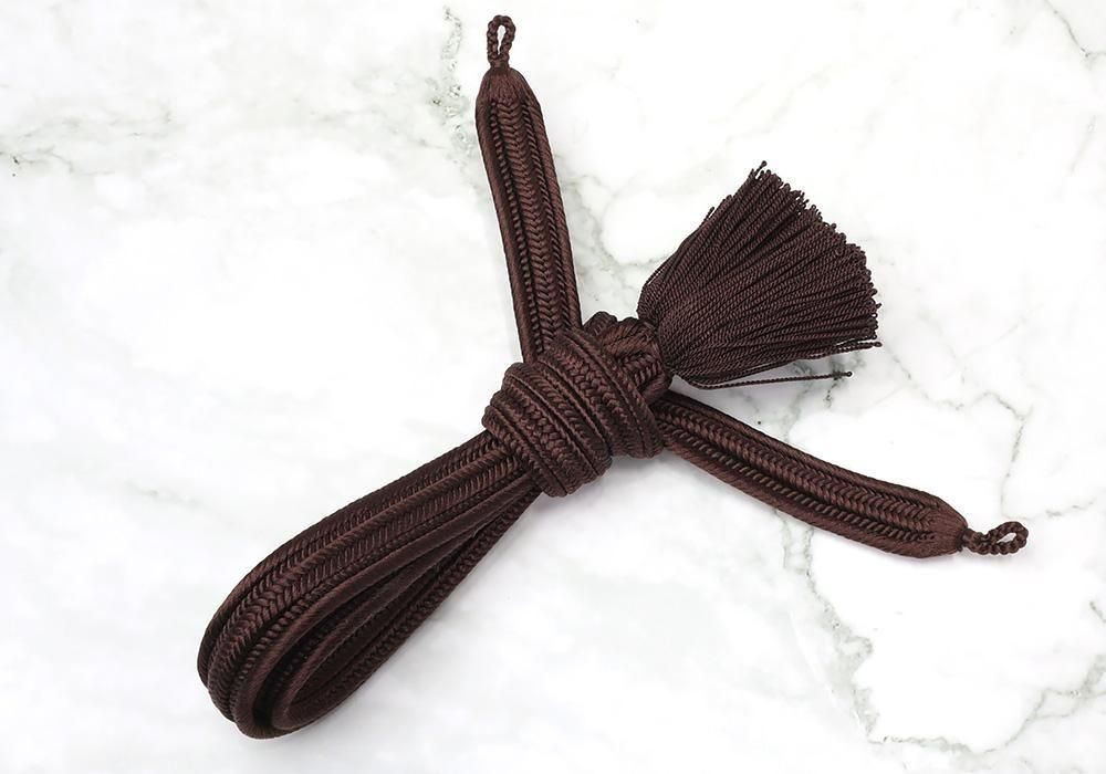 男性用羽織紐103 中尺 高麗龍甲より房 枇杷茶色 かん付けタイプ