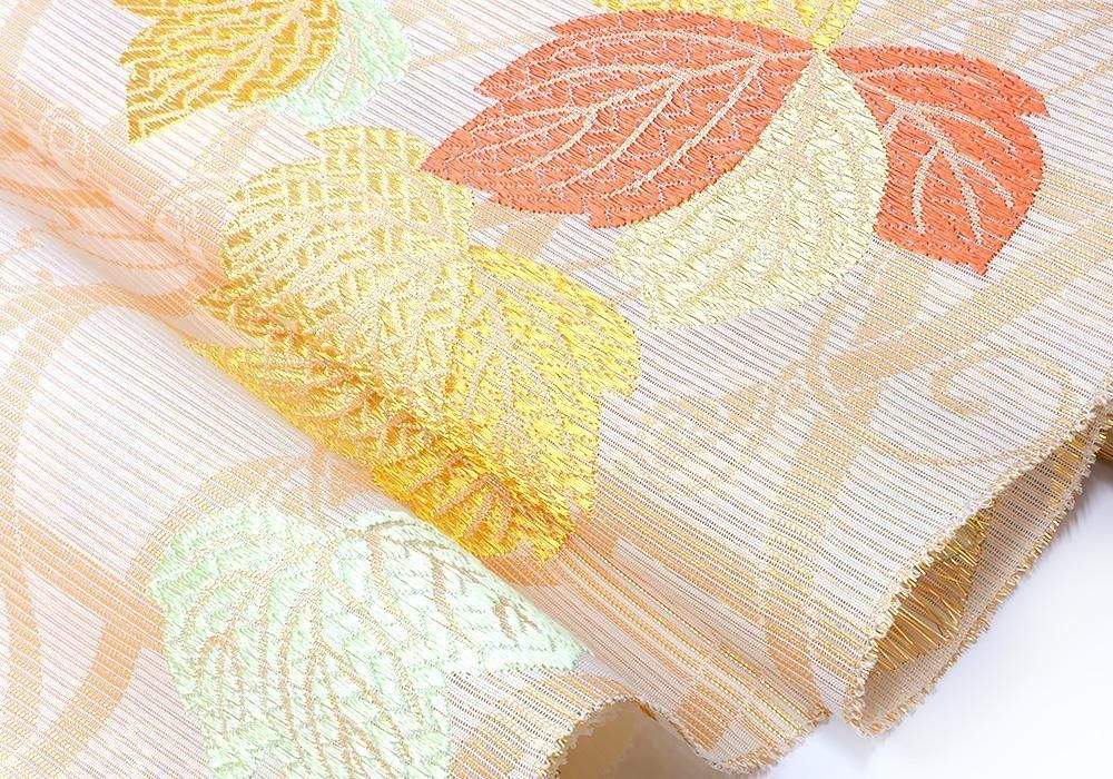 絽の生地に金糸や色糸で模様を織り出したものです。