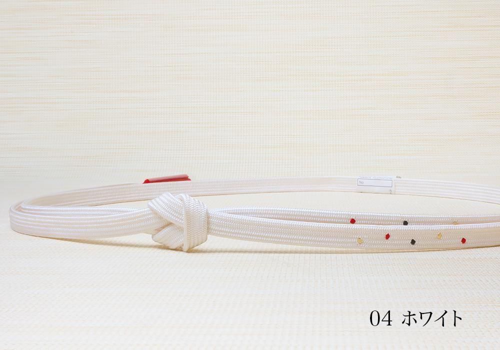 角朝組無地に小さい3色の水玉が片側にポツポツジグザグに並んでいます。