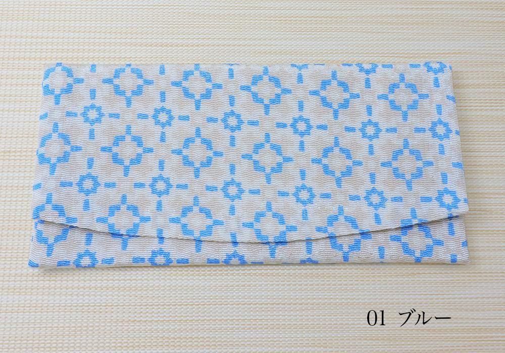 ちりめん十字花柄 蓋付札入れ・チケットケース