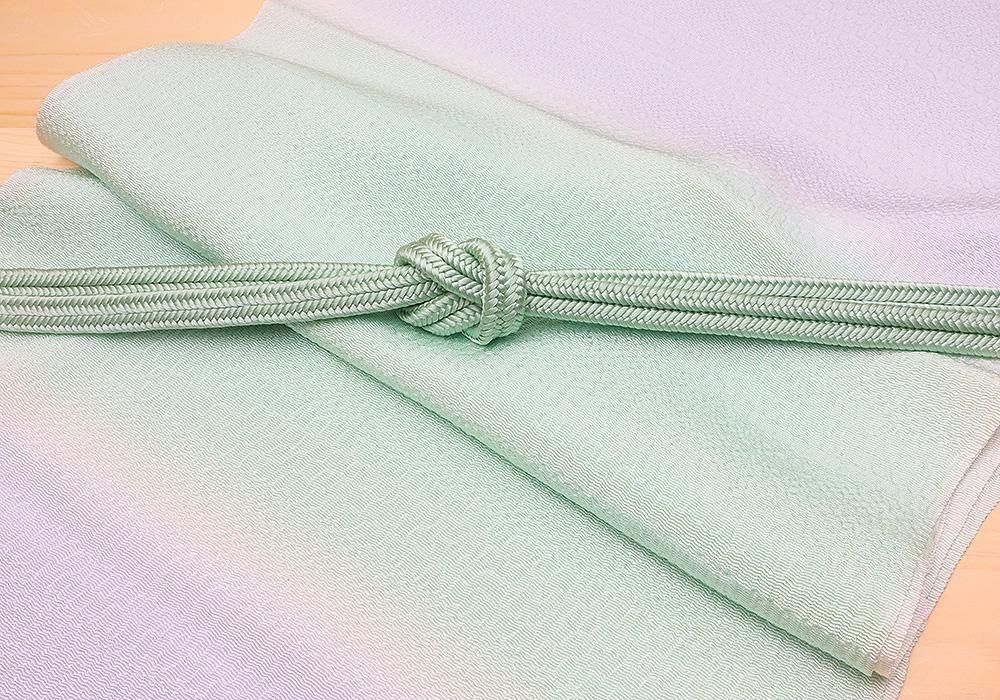 紫味のグレーと青磁色のぼかし帯揚げと京ゆるぎのセットです