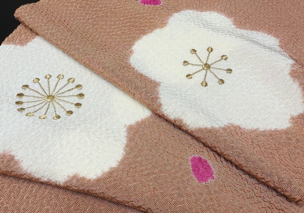 うずらちりめん 大きな桜絞りに刺繍 帯揚げ