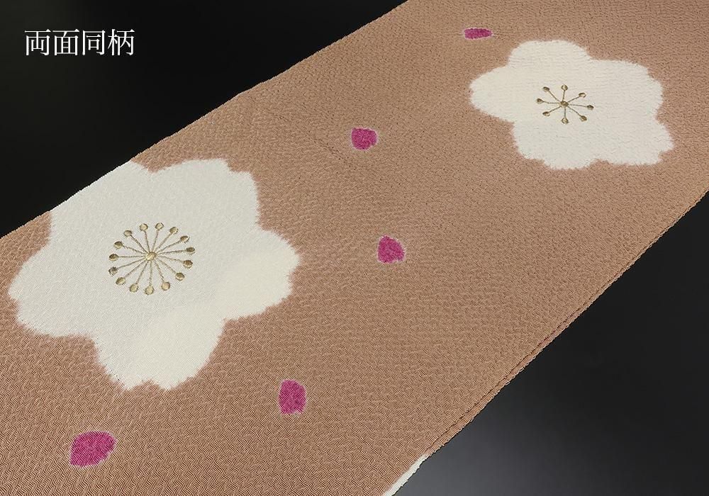 大きな桜絞りの周りに花びらがちらちら舞う、落ち着いた色目の帯揚げです。